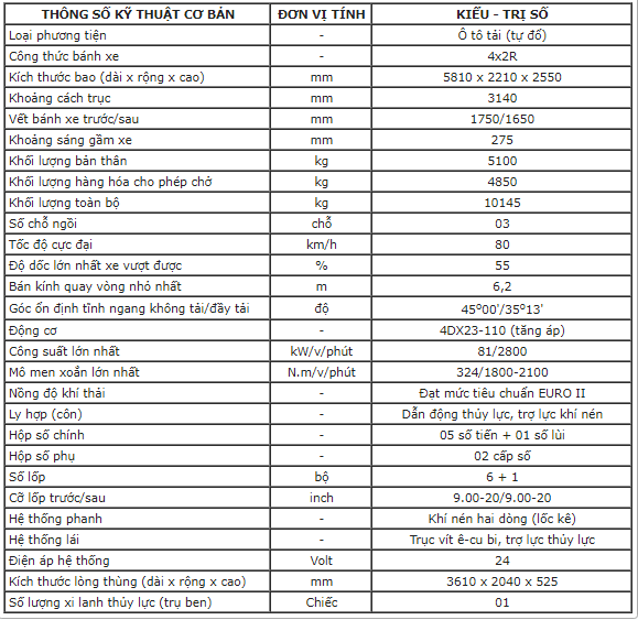 Previous Next Toggle navigation Giới thiệu Tầm nhìn doanh nghiệp Sứ mệnh và giá trị cốt lõi Văn Hóa Doanh Nghiệp Chiến Lược Con Người Chiến Lược Phát Triển Công ty thành viên CÔNG TY TNHH TRUNG SƠN SHOWROOM MÁY MÓC THIẾT BỊ TRUNG SƠN CÔNG TY TNHH TRUNG SON - VĨNH LINH CÔNG TY TNHH TRUNG SON - GIO LINH CÔNG TY TNHH TRUNG SƠN - ĐÔNG HÀ CÔNG TY TNHH TRUNG SƠN - HƯỚNG HÓA TRUNG SƠN HUẾ TRUNG SƠN QUẢNG BÌNH TRUNG TÂM THƯƠNG MẠI Ô TÔ TRUNG SƠN ĐÀ NẴNG Lĩnh vựu hoạt động Sản Phẩm Phân Phối Dịch Vụ Sữa Chữa Dịch Vụ Bảo Hành Dịch Vụ Cho Thuê Máy Móc Tin tức sự kiện Thư viện hỉnh ảnh công ty video clip nổi bật Tuyển dụng Liện hệ Tin nổi bật: Lái thử ô tô Suzuki tại thành phố Đông Hà, Tỉnh Quảng Trị | “Doanh nghiệp lỗ gấp 3 lần vốn vẫn bị áp thuế thu nhập” Danh mục sản phẩm Máy Nông nghiệp Máy cơ khí Trung sơn Quảng Trị Trung Sơn Quảng Bình Trung sơn Đà Nẵng Trung sơn huế Ô tô Toyota Ô tô Hoa Mai Ô tô tải chiến thắng Bán tải và SUV Isuzu Ô tô tải Isuzu Máy móc thiết bị Thiết Bị Cầm Tay MAKITA Thiết Bị Cầm Tay BOSCH ĐỘNG CƠ HONDA Máy xây dựng Sản phẩm bán chạy ÔTÔ TẢI (CÓ MUI) - DONGFENG CT9.0TL1/KM - 9.000 KG Máy trộn bê tông Rồng Việt -250L Máy cày xới đất cầm tay GN91 Máy phun bê tông HSP7 Máy nén khí D&D RBC2050I (2HP) MÁY BĂM NỀN KL – 205E Hỗ trợ trực tuyến Khu vực HCM - Toàn quốc Lĩnh vực nông ngư cơ Mr Sơn : 0986325999 Ms Linh : 0988166272 Lĩnh vực ô tô Ms Linh : 0941605999 Ms Nhung : 0931937999 Ô tô tải (tự đổ) HOA MAI - HD4850A-E2TD Mã sản phẩm : HD4850A-E2TD Giá bán: Liên Hệ Giới thiệu sản phẩm Thông số kỹ thuật Đối tác của chúng tôi Kết nối cộng đồng Đăng ký nhận bản tin Đăng ký