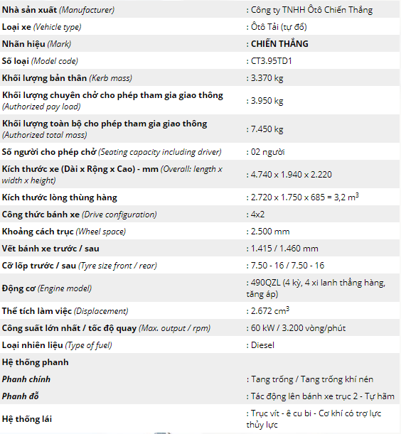Previous Next Toggle navigation Giới thiệu Tầm nhìn doanh nghiệp Sứ mệnh và giá trị cốt lõi Văn Hóa Doanh Nghiệp Chiến Lược Con Người Chiến Lược Phát Triển Công ty thành viên CÔNG TY TNHH TRUNG SƠN SHOWROOM MÁY MÓC THIẾT BỊ TRUNG SƠN CÔNG TY TNHH TRUNG SON - VĨNH LINH CÔNG TY TNHH TRUNG SON - GIO LINH CÔNG TY TNHH TRUNG SƠN - ĐÔNG HÀ CÔNG TY TNHH TRUNG SƠN - HƯỚNG HÓA TRUNG SƠN HUẾ TRUNG SƠN QUẢNG BÌNH TRUNG TÂM THƯƠNG MẠI Ô TÔ TRUNG SƠN ĐÀ NẴNG Lĩnh vựu hoạt động Sản Phẩm Phân Phối Dịch Vụ Sữa Chữa Dịch Vụ Bảo Hành Dịch Vụ Cho Thuê Máy Móc Tin tức sự kiện Thư viện hỉnh ảnh công ty video clip nổi bật Tuyển dụng Liện hệ Tin nổi bật: Lái thử ô tô Suzuki tại thành phố Đông Hà, Tỉnh Quảng Trị | “Doanh nghiệp lỗ gấp 3 lần vốn vẫn bị áp thuế thu nhập” Danh mục sản phẩm Máy Nông nghiệp Máy cơ khí Trung sơn Quảng Trị Trung Sơn Quảng Bình Trung sơn Đà Nẵng Trung sơn huế Ô tô Toyota Ô tô Hoa Mai Ô tô tải chiến thắng Bán tải và SUV Isuzu Ô tô tải Isuzu Máy móc thiết bị Thiết Bị Cầm Tay MAKITA Thiết Bị Cầm Tay BOSCH ĐỘNG CƠ HONDA Máy xây dựng Sản phẩm bán chạy ÔTÔ TẢI (CÓ MUI) - DONGFENG CT9.0TL1/KM - 9.000 KG Máy trộn bê tông Rồng Việt -250L Máy cày xới đất cầm tay GN91 Máy phun bê tông HSP7 Máy nén khí D&D RBC2050I (2HP) MÁY BĂM NỀN KL – 205E Hỗ trợ trực tuyến Khu vực HCM - Toàn quốc Lĩnh vực nông ngư cơ Mr Sơn : 0986325999 Ms Linh : 0988166272 Lĩnh vực ô tô Ms Linh : 0941605999 Ms Nhung : 0931937999 ÔTÔ TẢI (TỰ ĐỔ) - CHIẾN THẮNG CT3.95TD1 - 3.950 KG Mã sản phẩm : ct395td1 Giá bán: Liên Hệ Giới thiệu sản phẩm Thông số kỹ thuật Đối tác của chúng tôi Kết nối cộng đồng Đăng ký nhận bản tin Đăng ký
