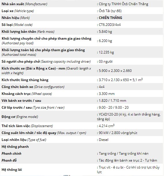 Previous Next Toggle navigation Giới thiệu Tầm nhìn doanh nghiệp Sứ mệnh và giá trị cốt lõi Văn Hóa Doanh Nghiệp Chiến Lược Con Người Chiến Lược Phát Triển Công ty thành viên CÔNG TY TNHH TRUNG SƠN SHOWROOM MÁY MÓC THIẾT BỊ TRUNG SƠN CÔNG TY TNHH TRUNG SON - VĨNH LINH CÔNG TY TNHH TRUNG SON - GIO LINH CÔNG TY TNHH TRUNG SƠN - ĐÔNG HÀ CÔNG TY TNHH TRUNG SƠN - HƯỚNG HÓA TRUNG SƠN HUẾ TRUNG SƠN QUẢNG BÌNH TRUNG TÂM THƯƠNG MẠI Ô TÔ TRUNG SƠN ĐÀ NẴNG Lĩnh vựu hoạt động Sản Phẩm Phân Phối Dịch Vụ Sữa Chữa Dịch Vụ Bảo Hành Dịch Vụ Cho Thuê Máy Móc Tin tức sự kiện Thư viện hỉnh ảnh công ty video clip nổi bật Tuyển dụng Liện hệ Tin nổi bật: Lái thử ô tô Suzuki tại thành phố Đông Hà, Tỉnh Quảng Trị | “Doanh nghiệp lỗ gấp 3 lần vốn vẫn bị áp thuế thu nhập” Danh mục sản phẩm Máy Nông nghiệp Máy cơ khí Trung sơn Quảng Trị Trung Sơn Quảng Bình Trung sơn Đà Nẵng Trung sơn huế Ô tô Toyota Ô tô Hoa Mai Ô tô tải chiến thắng Bán tải và SUV Isuzu Ô tô tải Isuzu Máy móc thiết bị Thiết Bị Cầm Tay MAKITA Thiết Bị Cầm Tay BOSCH ĐỘNG CƠ HONDA Máy xây dựng Sản phẩm bán chạy ÔTÔ TẢI (CÓ MUI) - DONGFENG CT9.0TL1/KM - 9.000 KG Máy trộn bê tông Rồng Việt -250L Máy cày xới đất cầm tay GN91 Máy phun bê tông HSP7 Máy nén khí D&D RBC2050I (2HP) MÁY BĂM NỀN KL – 205E Hỗ trợ trực tuyến Khu vực HCM - Toàn quốc Lĩnh vực nông ngư cơ Mr Sơn : 0986325999 Ms Linh : 0988166272 Lĩnh vực ô tô Ms Linh : 0941605999 Ms Nhung : 0931937999 ÔTÔ TẢI (TỰ ĐỔ) - CHIẾN THẮNG CT6.20D3/4X4 - 6.200 KG Mã sản phẩm : ct620d3 Giá bán: Liên Hệ Giới thiệu sản phẩm Thông số kỹ thuật Đối tác của chúng tôi Kết nối cộng đồng Đăng ký nhận bản tin Đăng ký