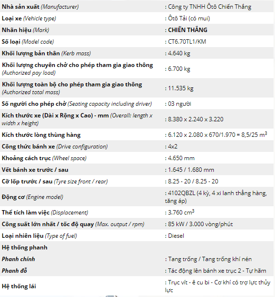 Previous Next Toggle navigation Giới thiệu Tầm nhìn doanh nghiệp Sứ mệnh và giá trị cốt lõi Văn Hóa Doanh Nghiệp Chiến Lược Con Người Chiến Lược Phát Triển Công ty thành viên CÔNG TY TNHH TRUNG SƠN SHOWROOM MÁY MÓC THIẾT BỊ TRUNG SƠN CÔNG TY TNHH TRUNG SON - VĨNH LINH CÔNG TY TNHH TRUNG SON - GIO LINH CÔNG TY TNHH TRUNG SƠN - ĐÔNG HÀ CÔNG TY TNHH TRUNG SƠN - HƯỚNG HÓA TRUNG SƠN HUẾ TRUNG SƠN QUẢNG BÌNH TRUNG TÂM THƯƠNG MẠI Ô TÔ TRUNG SƠN ĐÀ NẴNG Lĩnh vựu hoạt động Sản Phẩm Phân Phối Dịch Vụ Sữa Chữa Dịch Vụ Bảo Hành Dịch Vụ Cho Thuê Máy Móc Tin tức sự kiện Thư viện hỉnh ảnh công ty video clip nổi bật Tuyển dụng Liện hệ Tin nổi bật: Lái thử ô tô Suzuki tại thành phố Đông Hà, Tỉnh Quảng Trị | “Doanh nghiệp lỗ gấp 3 lần vốn vẫn bị áp thuế thu nhập” Danh mục sản phẩm Máy Nông nghiệp Máy cơ khí Trung sơn Quảng Trị Trung Sơn Quảng Bình Trung sơn Đà Nẵng Trung sơn huế Ô tô Toyota Ô tô Hoa Mai Ô tô tải chiến thắng Bán tải và SUV Isuzu Ô tô tải Isuzu Máy móc thiết bị Thiết Bị Cầm Tay MAKITA Thiết Bị Cầm Tay BOSCH ĐỘNG CƠ HONDA Máy xây dựng Sản phẩm bán chạy ÔTÔ TẢI (CÓ MUI) - DONGFENG CT9.0TL1/KM - 9.000 KG Máy trộn bê tông Rồng Việt -250L Máy cày xới đất cầm tay GN91 Máy phun bê tông HSP7 Máy nén khí D&D RBC2050I (2HP) MÁY BĂM NỀN KL – 205E Hỗ trợ trực tuyến Khu vực HCM - Toàn quốc Lĩnh vực nông ngư cơ Mr Sơn : 0986325999 Ms Linh : 0988166272 Lĩnh vực ô tô Ms Linh : 0941605999 Ms Nhung : 0931937999 ÔTÔ TẢI (CÓ MUI) - CHIẾN THẮNG CT6.70TL1/KM - 6.700 KG Mã sản phẩm : ct670tl1 Giá bán: Liên Hệ Giới thiệu sản phẩm Thông số kỹ thuật Đối tác của chúng tôi Kết nối cộng đồng Đăng ký nhận bản tin Đăng ký
